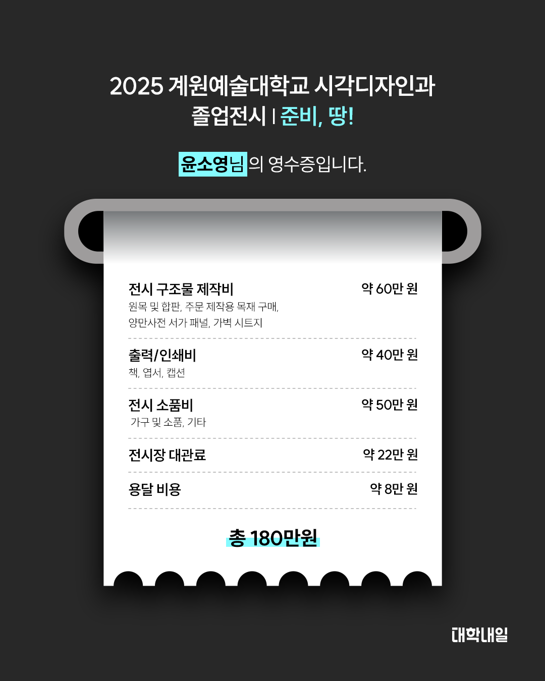졸업전시는 학생들의 개성, 밀도 높은 공간, 디테일들로 꽉꽉 채워져 있다. 하지만, 화려한 전시 뒤에는 지출과 시간, 그리고 압박이 존재한다.