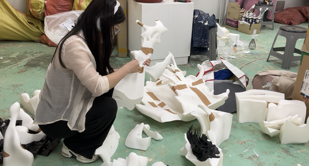 저는 조각 스튜디오 작품 '산 위에서 파도 엮기' 1점, 매체 스튜디오 작품 'Ctrl+P' 1점으로 제작했습니다. 작품 준비 기간은 올해 3월부터 11월까지, 총 8개월 걸렸습니다.