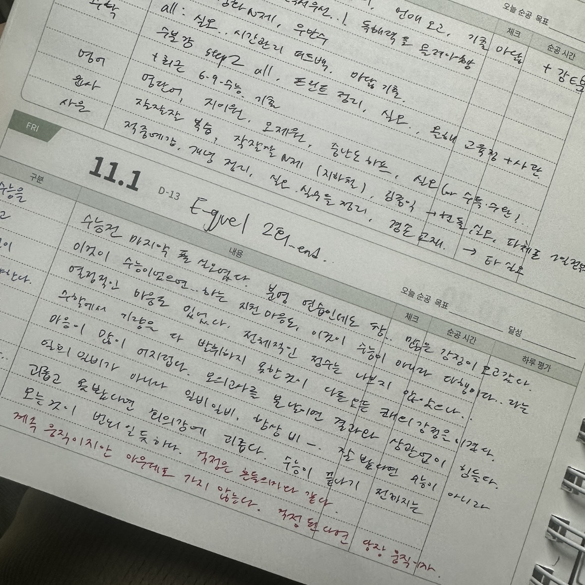 '극복'이라고 말하기는 어려울 것 같습니다. 개인적으로 극복은 수능이 끝난 뒤에야 붙일 수 있는 말이라고 생각합니다. 저는 그저 일기를 쓰거나 영상을 찍으며 마음을 기록했고, 그렇게 하루하루를 버티는 방식으로 지나갔습니다.