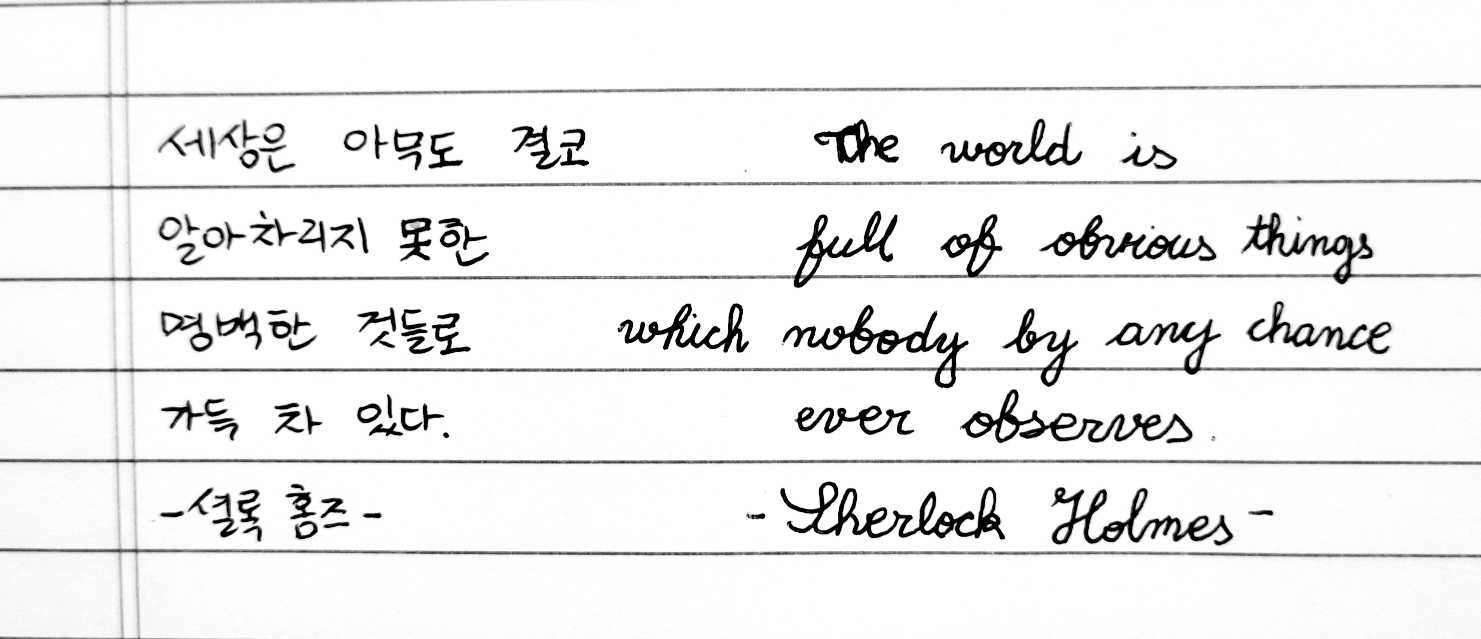 문장 필사 : 김예령 제공“The world is full of obvious things which nobody by any chance ever observes.