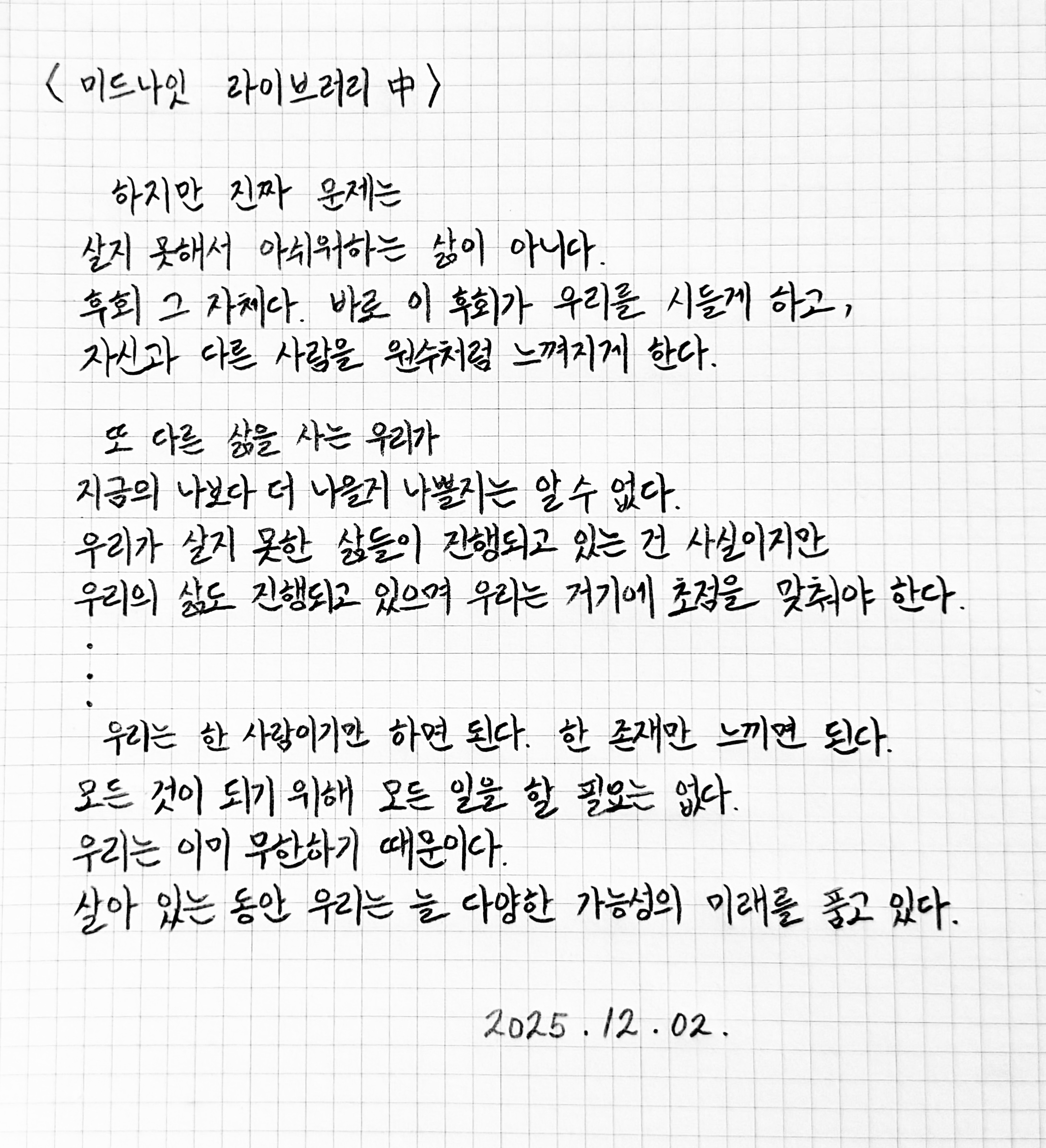 문장 필사 : 김준형 제공"또 다른 삶을 사는 우리가