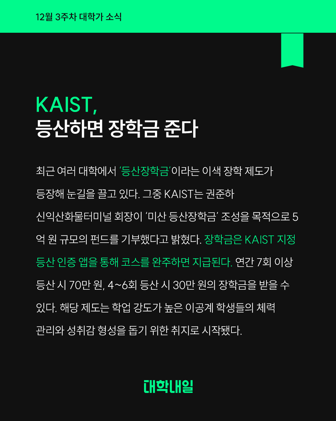 KAIST, 등산하면 장학금 준다