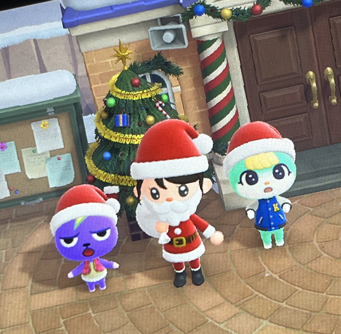 닌텐도 스위치 게임, '모여봐요 동물의 숲' 크리스마스 이벤트를 매년 즐깁니다. 크리스마스이브와 당일 이틀에 걸쳐 참여하는 이벤트이기 때문에, 매해 이브 저녁쯤 게임에 접속해요. 이벤트 말고도 크리스마스 당일에는 동물의 숲 주민들과 크리스마스 인사를 나누고, 게임 속 겨울 풍경을 감상하며 크리스마스 분위기를 만끽합니다.