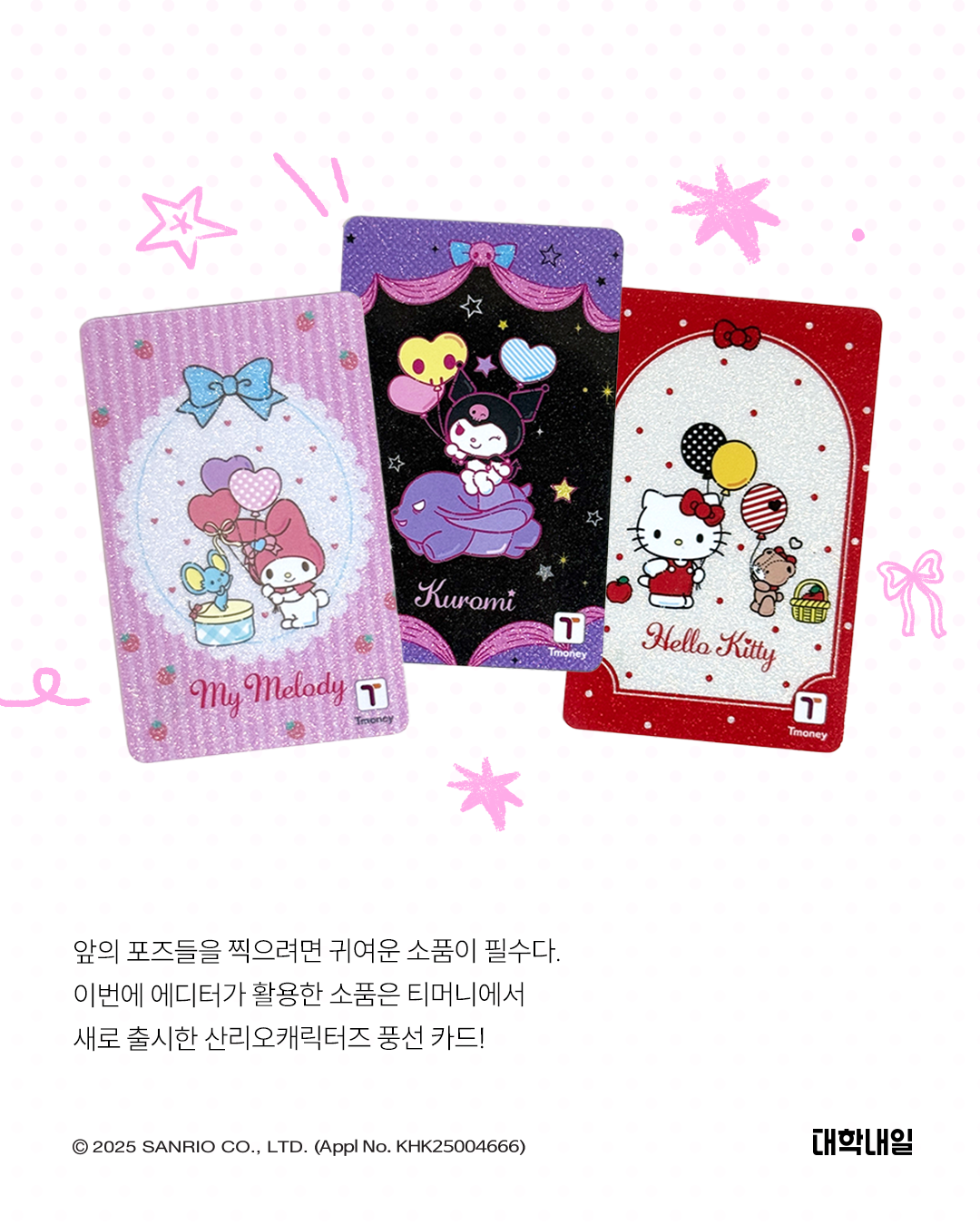 앞의 포즈들을 찍으려면 귀여운 소품이 필수다. 이번에 에디터가 활용한 소품은 티머니에서 새로 출시한 산리오캐릭터즈 풍선 카드!
