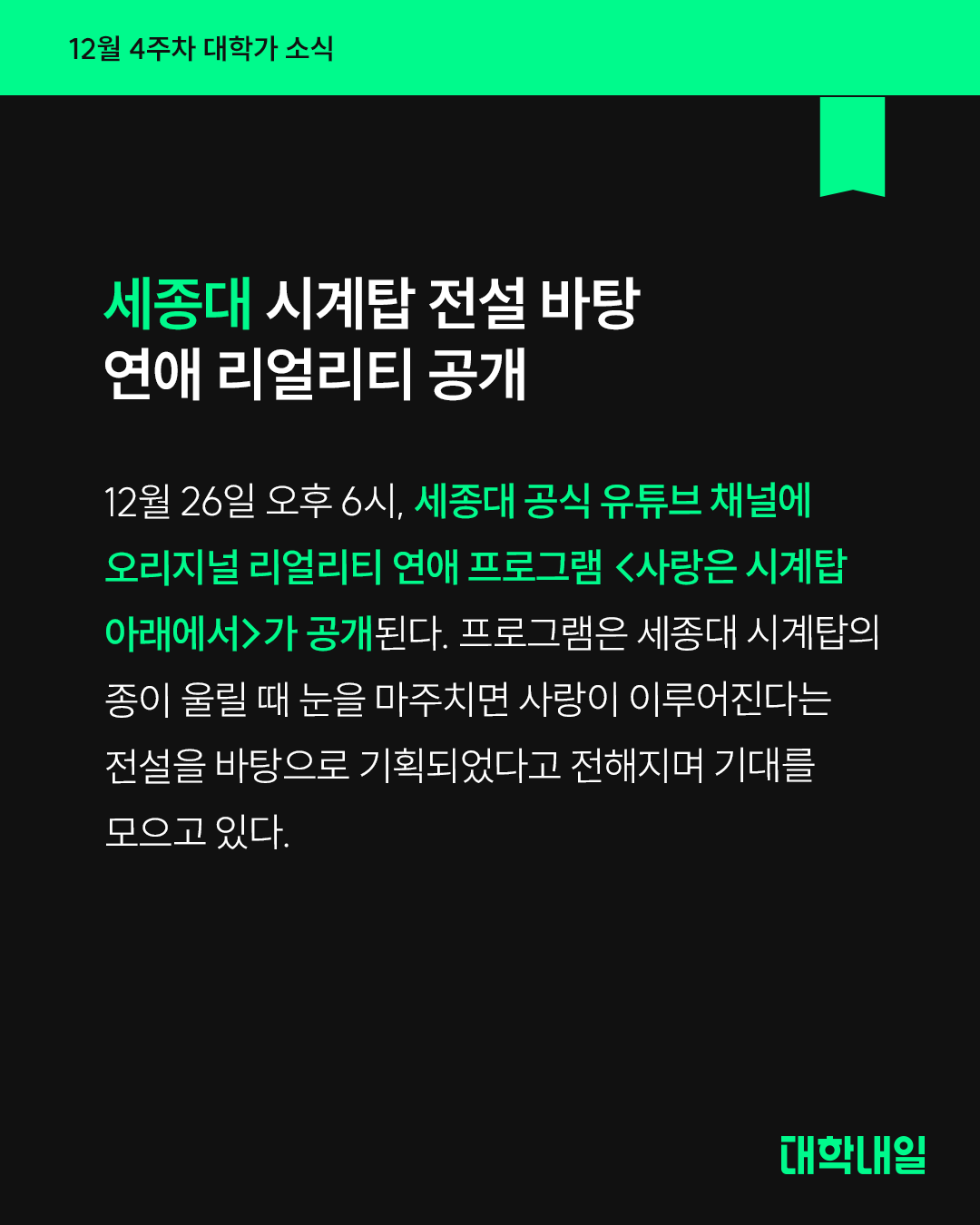 세종대 시계탑 전설 바탕 연애 리얼리티 공개
