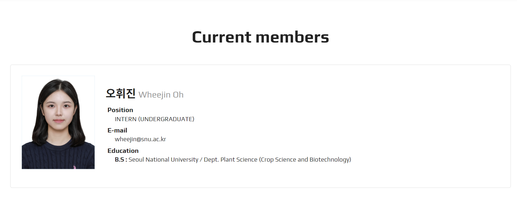 오휘진, 서울대 작물생명과학전공 23학번