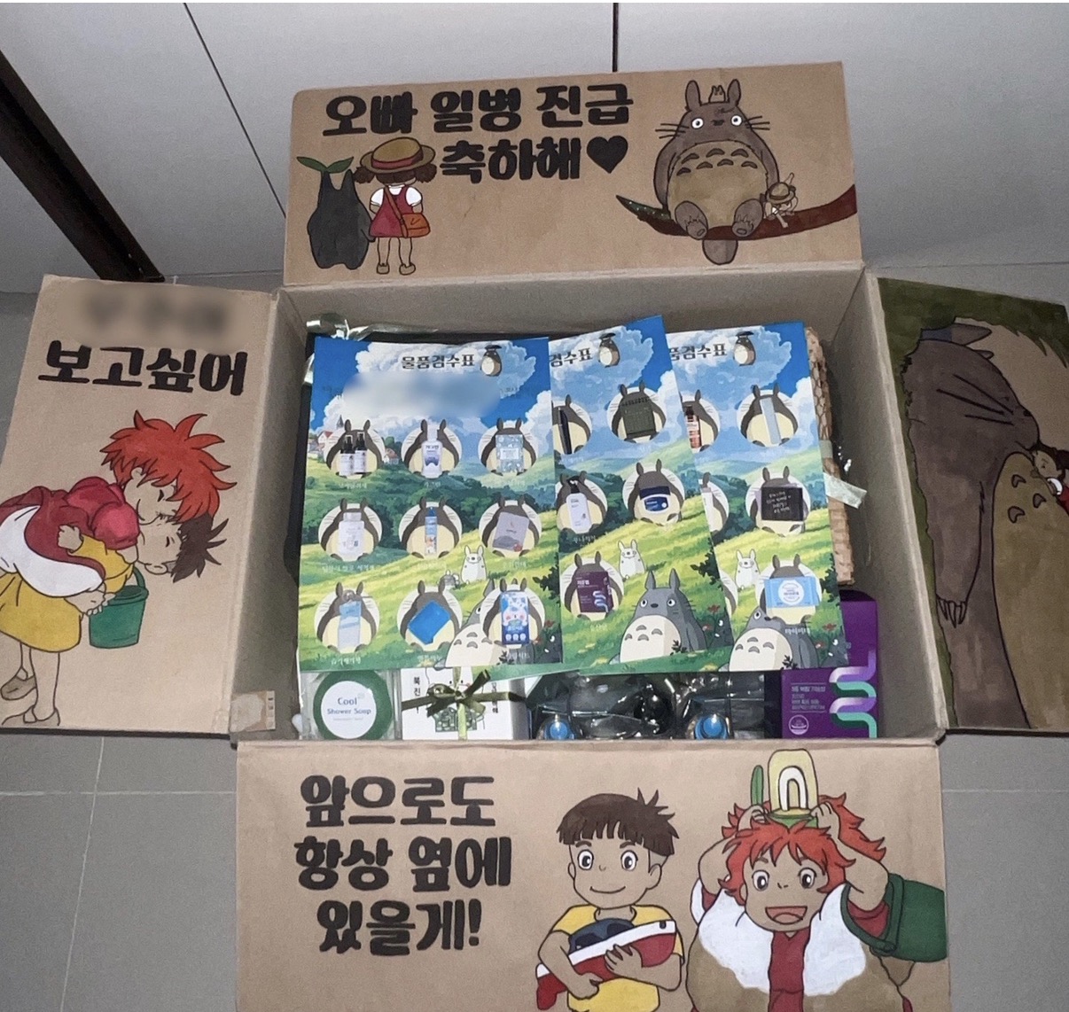 의외로 일상에서 자주 쓸 수 있는 물건들이 유용한 것 같습니다. 여름엔 '풋샴푸', '신발탈취제'가 좋았고, 겨울에는 '립밤'이 유용했습니다. 또, 훈련 중 다치는 일이 잦다 보니 '파스'도 유용했다고 전해 들었습니다. 그래도 손 편지나 사진을 보내주면 힘들 때 볼 수 있다고 제일 좋아합니다.