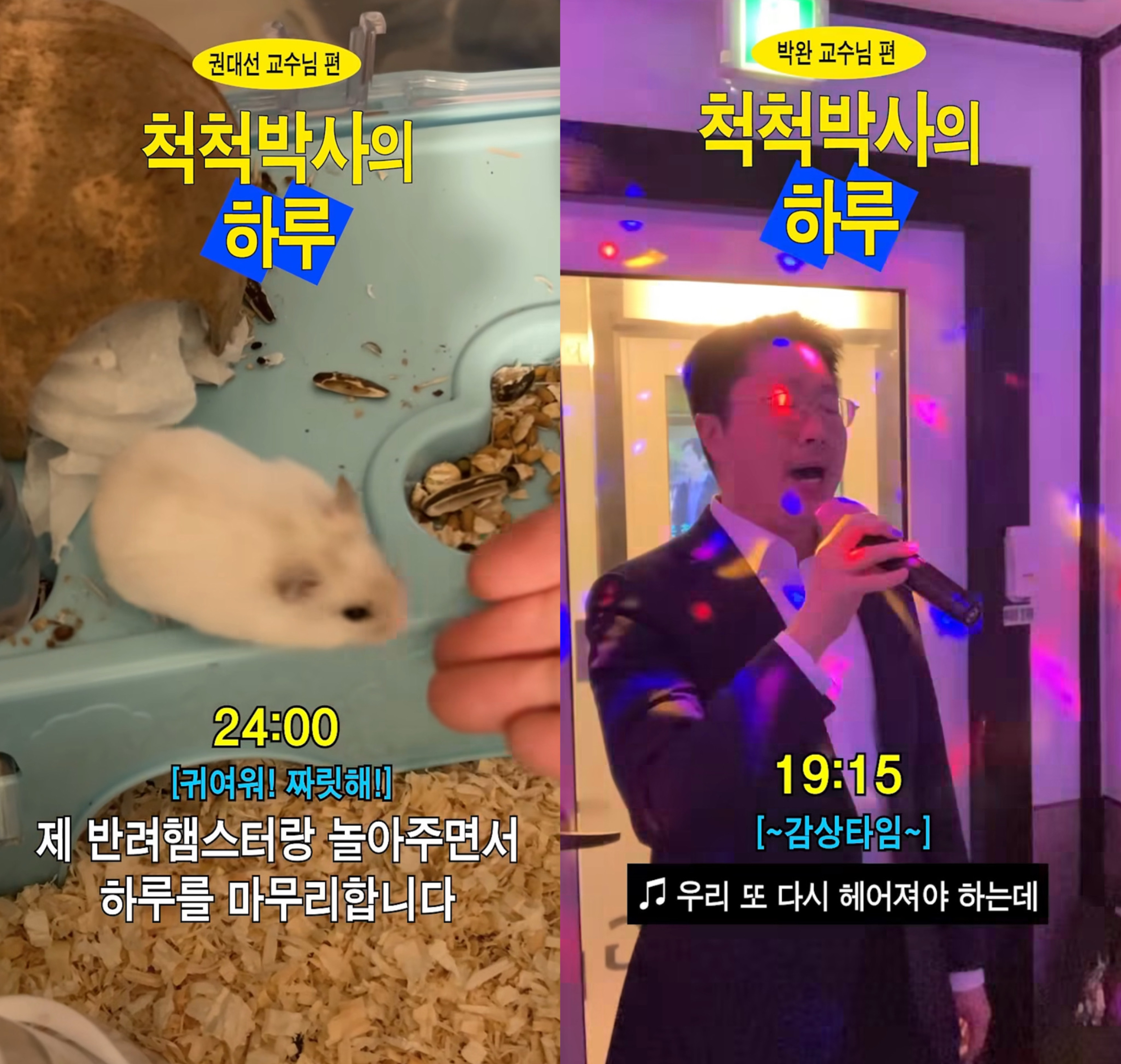권대선 교수님 편의 경우에는 무려 반려 햄스터가 썸네일이라, 햄스터를 보고 클릭하신 분들이 꽤 있지 않을까 싶습니다. 박완 교수님의 경우에는 노래방에 가셨다는 내용이 학생들 사이에서 빠르게 퍼졌던 것 같아요.