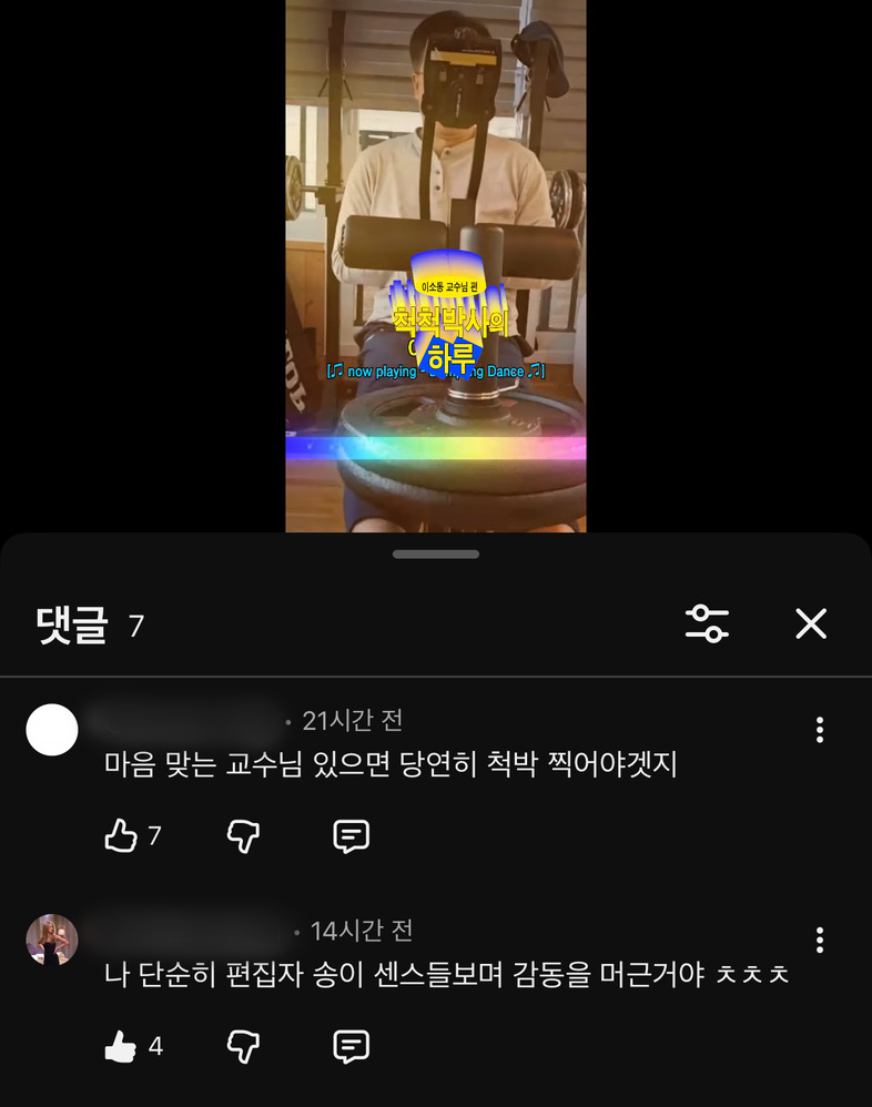 이소동 교수님 영상에 달린 댓글 반응영상을 본 교수님들의 반응도 궁금하네요.