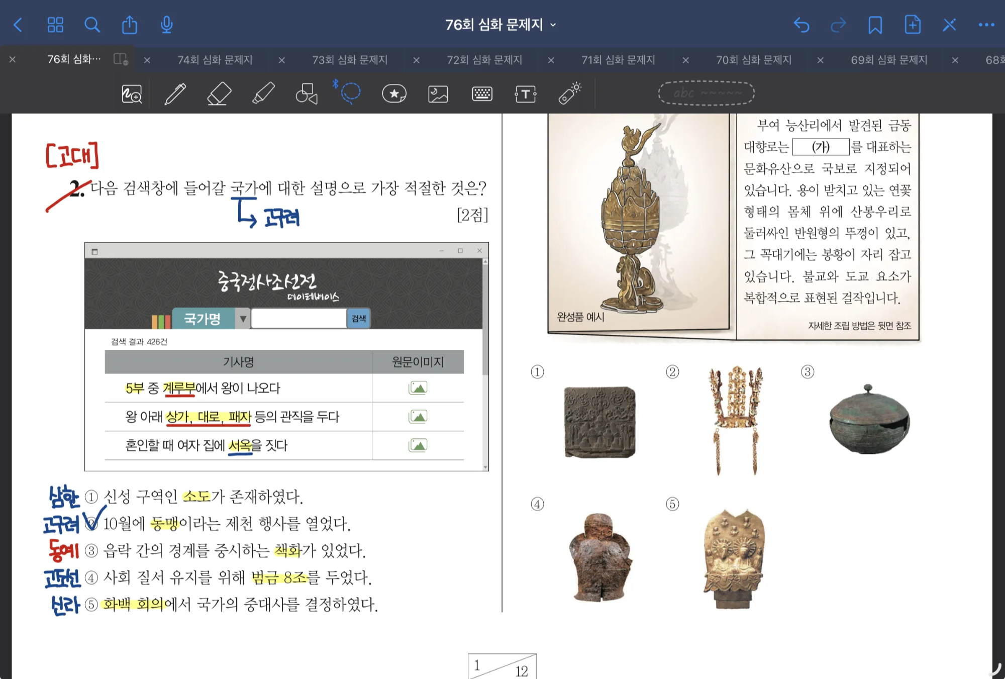 그리고 한 시대 파트부터 기출을 풀어본다. 이 단계에서 못 푸는 문제가 훨씬 많아도 정상이다.목표는 점수 확인이 아니라, 다음 단계인 선지 분석을 위한 재료를 모으는 것이다. 몇 회분을 한 번에 풀지는 일정에 맞춰 조절하면 된다.