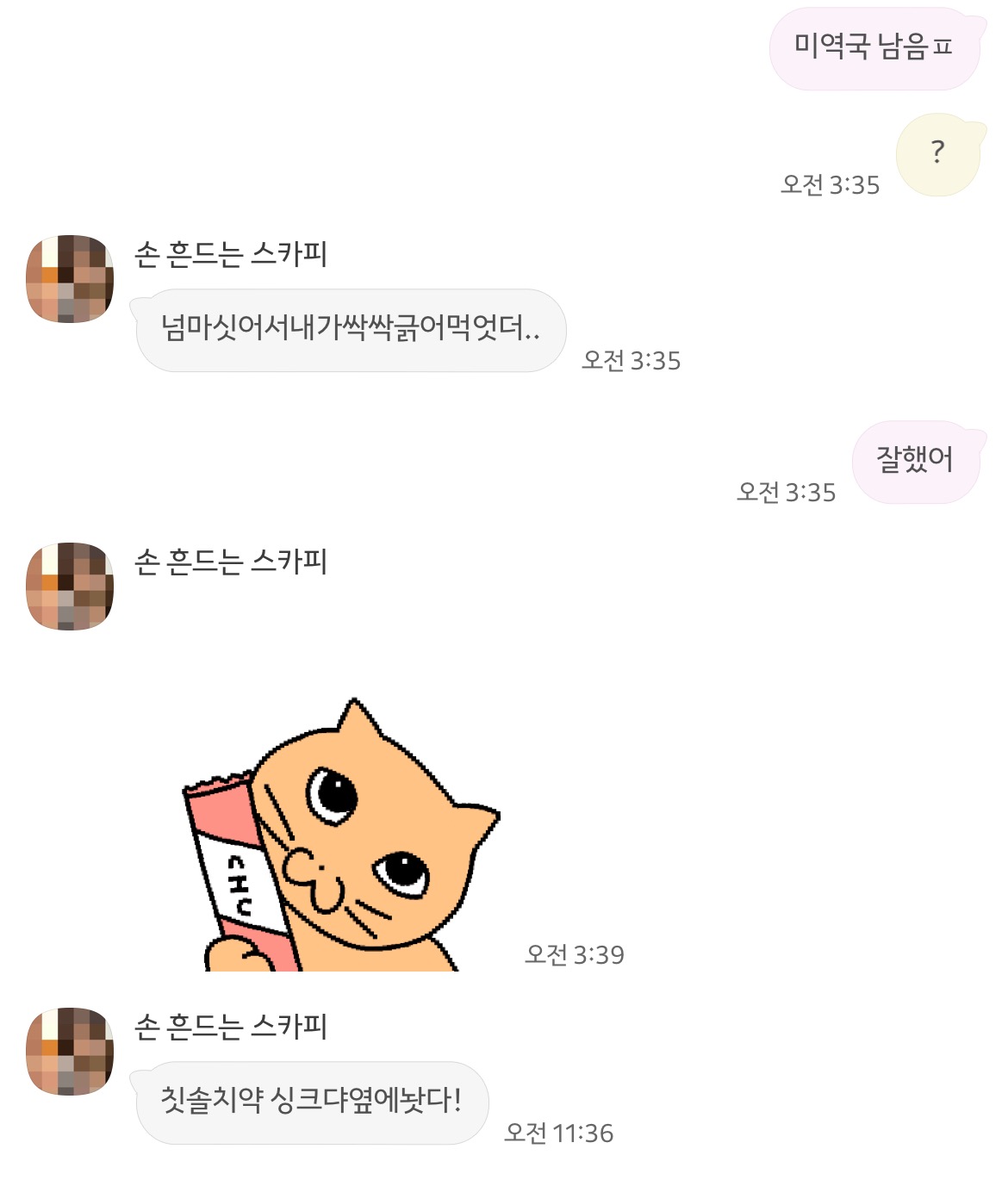 함께 먹으려고 끓인 미역국친구보다도 가까운 가족 같은 사이가 되었을 것 같아요.