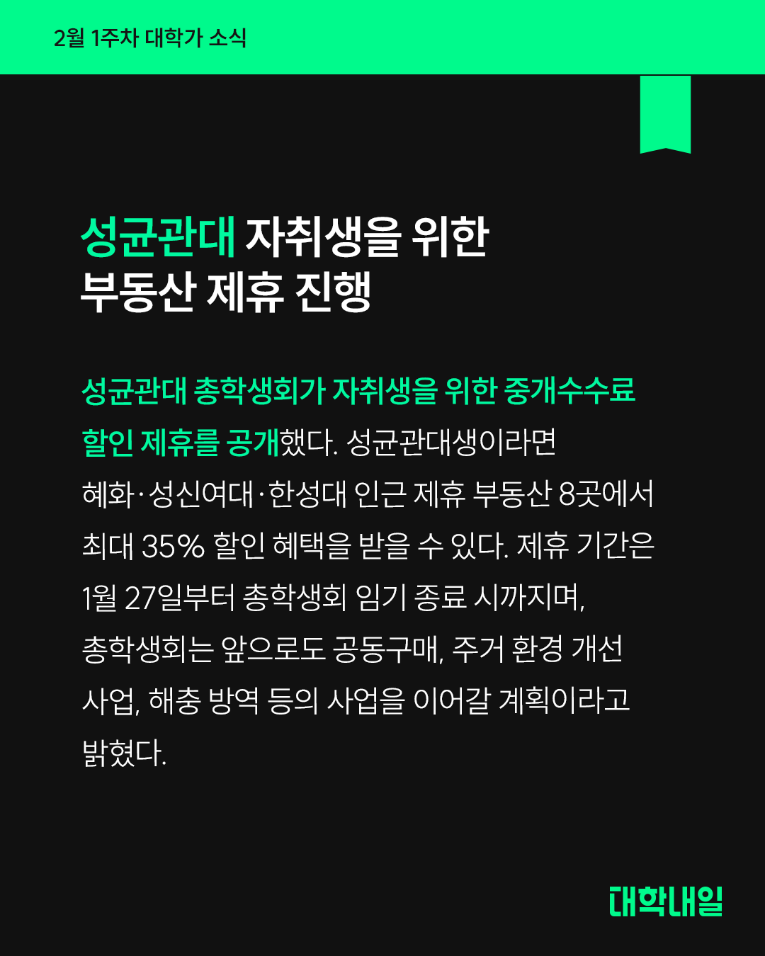 성균관대 자취생을 위한 부동산 제휴 진행