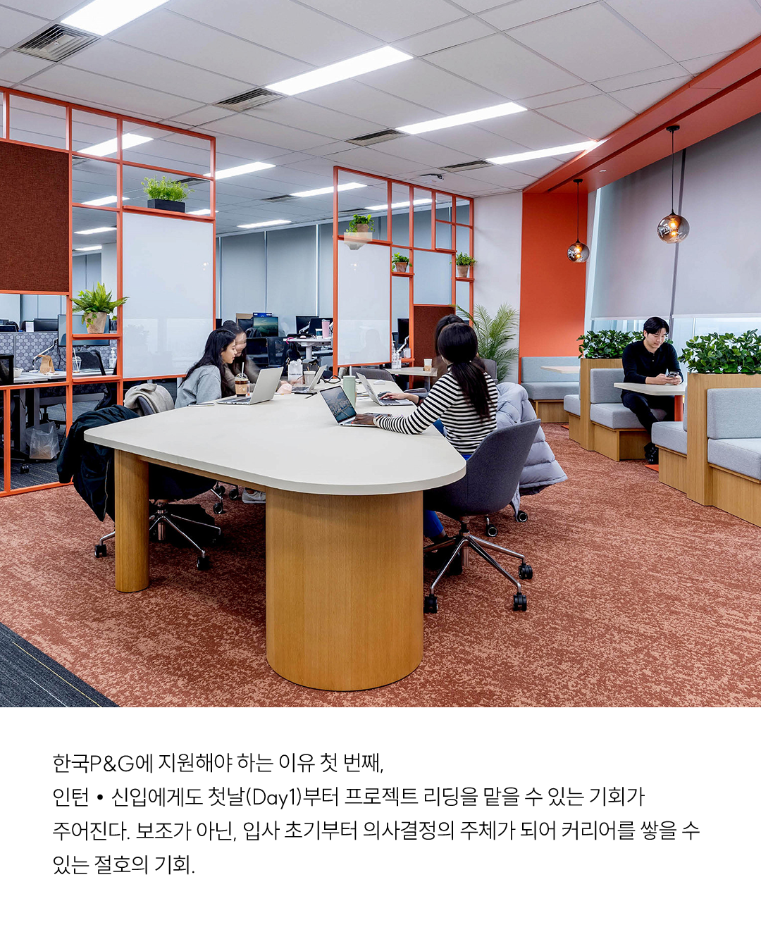 한국P&G에 지원해야 하는 이유 첫 번째, 인턴 • 신입에게도 첫날(Day1)부터 프로젝트 리딩을 맡을 수 있는 기회가 주어진다. 보조가 아닌, 입사 초기부터 의사결정의 주체가 되어 커리어를 쌓을 수 있는 절호의 기회.