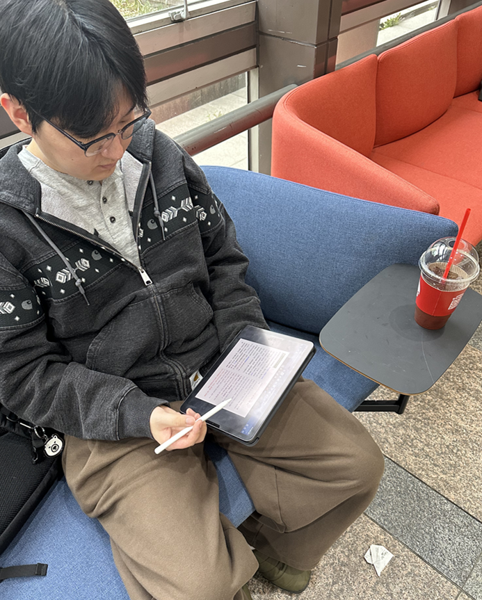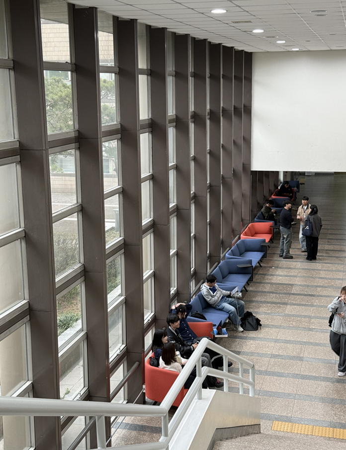 1학년때 교양을 들으면서 알게 된 장소에요. 1학년때 시간표를 잘못 짜서 매일 2~3시간씩 공강이 있었거든요. 그래서 그때부터 시간을 보내던게 습관이 되어 지금까지 시간을 보내는 장소에요. (웃음)