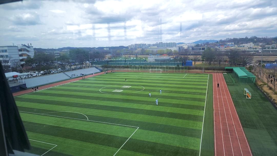 어디 기대서 공부하는걸 좋아해요. 그래서 벽이 있는 구석 자리를 좋아하는데, 그것에 딱 맞는 최고의 자리였어요. 게다가 강의동은 항공대에서 가장 최근에 지어진 건물이라 쾌적하고 깨끗하거든요. 사람도 별로 없고. 또 창문 너머로 보이는 잔디 구장에서 동아리 활동이 자주 이루어져요. 패러글라이딩 동아리의 활강 연습, 가끔 있는 축구 시합들이 보이는데 재밌더라구요. (웃음) 편의점도 바로 옆이라 여러므로 편하고 좋은 공간입니다.