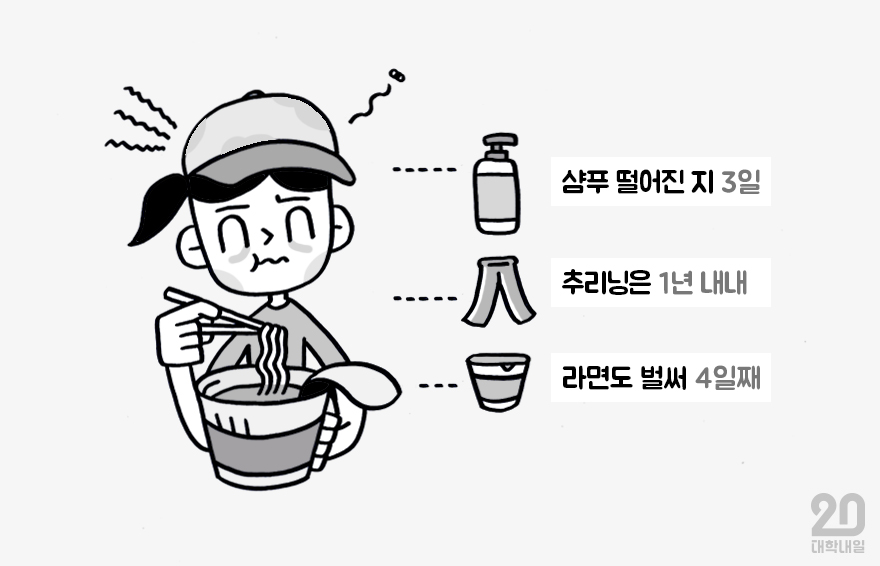수입이 없으니 지출이라도 줄여야 한다. 옷은 추리닝 몇 벌로 매일매일 돌려 입고, 밥은 가장 싼 거로 먹는다. 문제집이라도 몇 권 더 사는 달엔 꼼짝없이 라면이다. 고시원 생활을 하면 허리띠를 더 졸라매야 한다. 그런데 샴푸와 바디샴푸는 왜 꼭 한 번에 똑 떨어지는지. 사기는 아깝고, 집에 가서 가져오기엔 시간이 아까워 주말까지 버티기 일쑤다. 이렇게까지 해야 하나, 눈물이 난다.