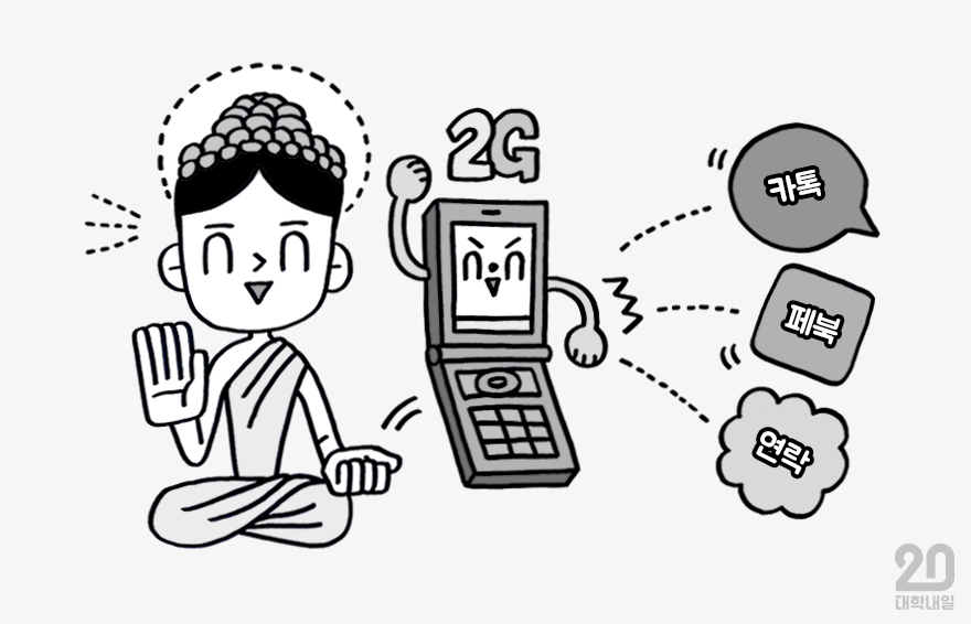 공무원 시험을 보기로 결심했다면 가장 먼저 할 일이 있다. 나를 시험에 들게 할 외부의 연락을 차단하는 것. 어지러운 속세에서 벗어나 돌부처처럼 흔들리지 않는 마음을 가지기 위해서다. 페북 삭제에 카톡 알림 해제는 필수, 카톡 탈퇴는 옵션이다. 아예 스마트폰을 정지하고 최소한의 연락만 받을 수 있도록 2G폰으로 바꾸는 경우도 많다.