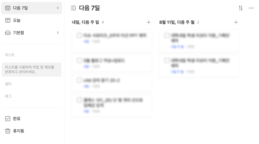 틱틱은 일주일 단위로 한눈에 할 일을 확인할 수 있어서