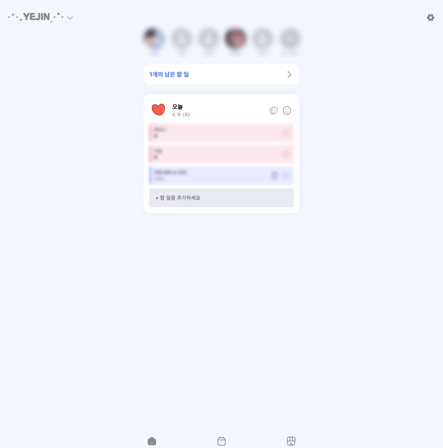 홈 화면에서는 오늘의 할 일과 친구 목록을 한눈에 보여줘서