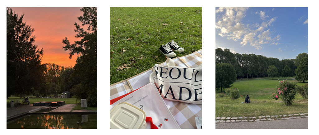 독일은 자연 보존이 잘 되어 있는 나라라서, 매일같이 공원에서 피크닉을 즐길 수 있었어요. 도시 곳곳에 넓은 공원이 있고, 날씨 좋은 날엔 돗자리 하나만 있으면 하루가 금방 지나가요. 주말에는 플리마켓을 구경하거나 Brauhaus 에서 독일 맥주와 학센, 그리고 지역 음식인 케제슈페츨레를 먹는 것이 일상의 큰 즐거움이었어요. 슈투트가르트 시립도서관, 벤츠 박물관, 포르쉐 박물관 등 슈투트가르트 지역 명소는 꼭 들러보시길 추천드립니다.