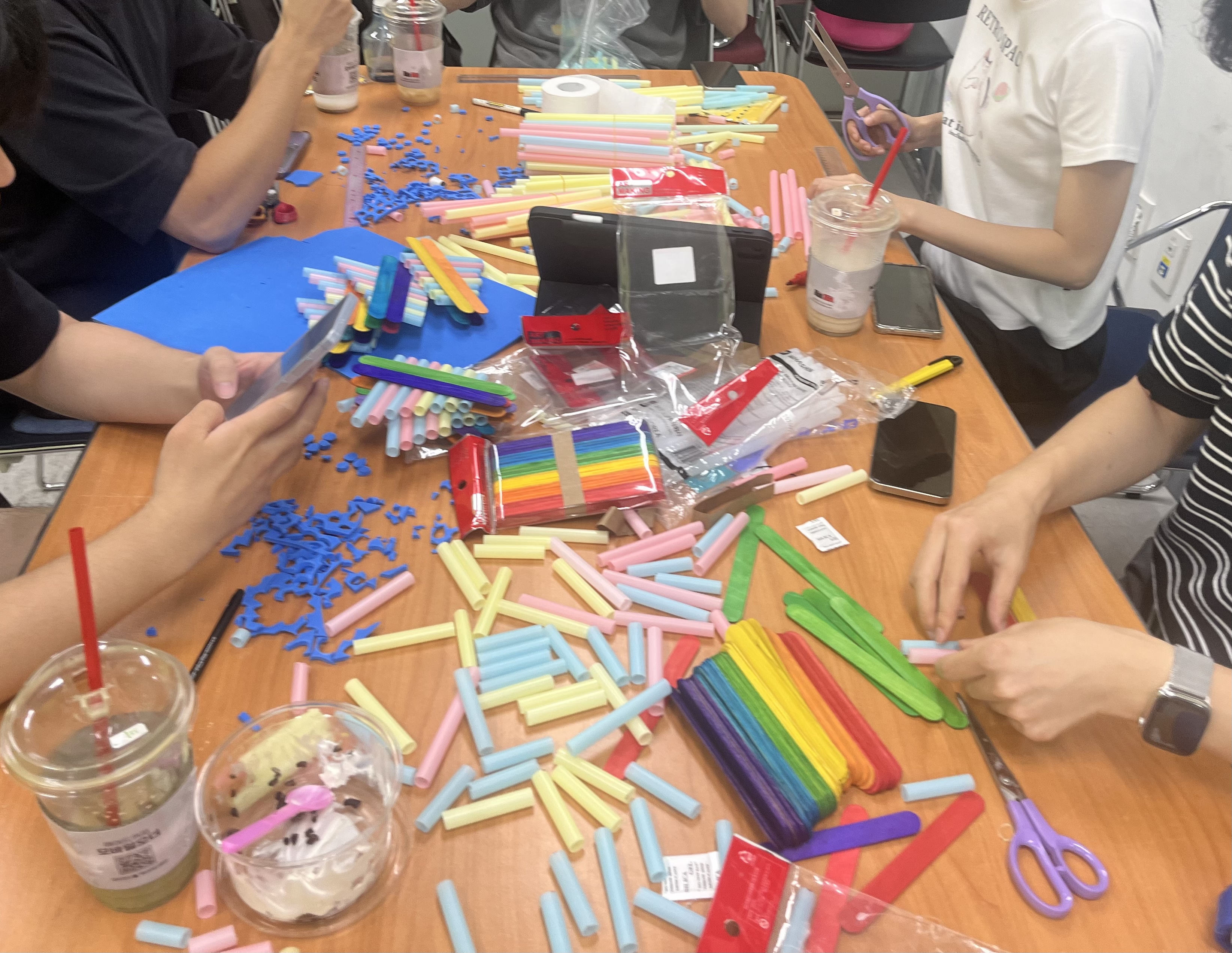 사전 교육 때 교육 봉사 조와 문화 교류 조를 편성해요. 이후 파견 전 한 달이라는 시간 동안 팀원들과 매주 2회 이상 온라인 혹은 오프라인으로 만나며 교육 기획부터 교구 제작 및 시나리오 작성을 했어요. 지난 2024년 여름 방학은 온전히 해외 봉사 파견을 준비하며 보낸 기억이네요.