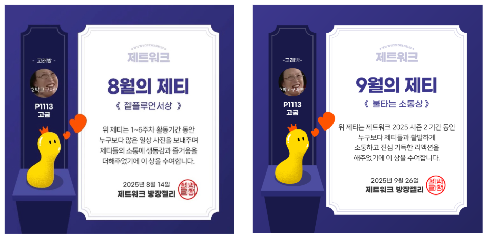 제트워크 활동은 6주마다 중간 시상식, 최종 시상식을 진행하고 있는데요!