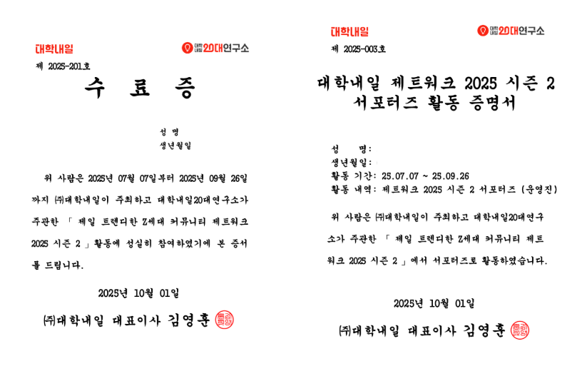 - 대학내일 20대 연구소 콘텐츠 참여 (뉴스레터, 트렌드 리포터에 인터뷰이 자격으로 참여)