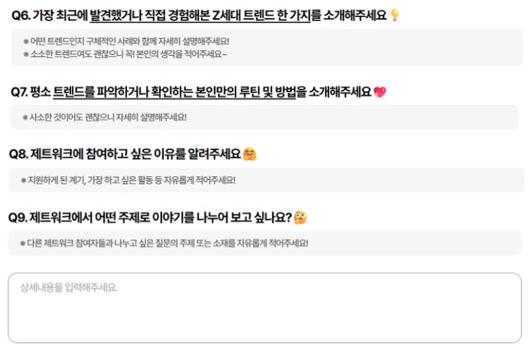 그리고 무엇보다 지원서에서 가장 중요한 건, 자신이 생각하는 요즘 Z세대 트렌드에 대해 '솔직하게'
