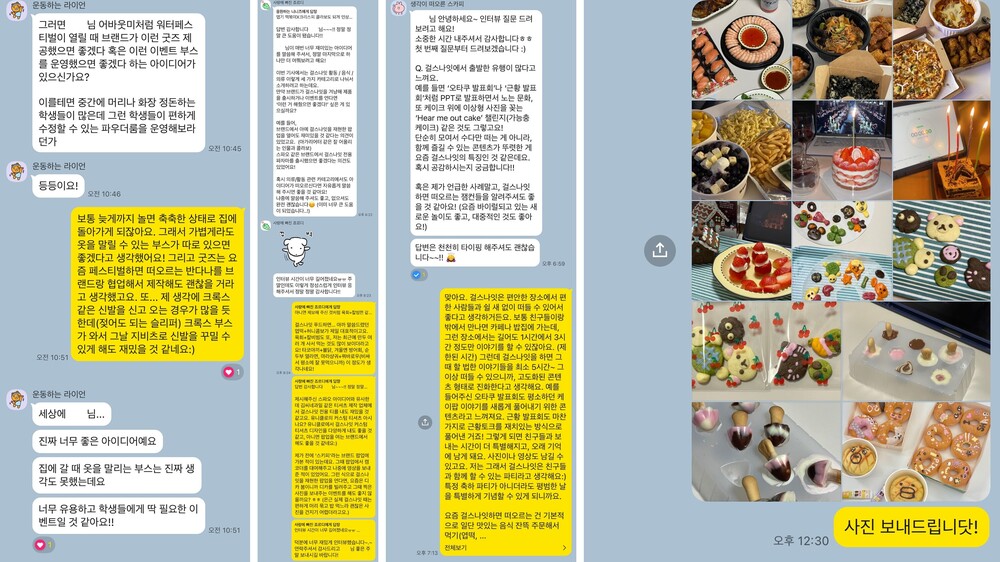 에디터분들과의 카카오톡 대화 - 인터뷰&사진 제보제가 잘 아는 분야의 주제가 올라오면 꼭 인터뷰하고 싶어서 열심히 제보해요. 그렇게 제보한 내용으로 인터뷰까지 하고, 그 내용이 콘텐츠화되면 정말 뿌듯해요. 나중에 완성된 글을 읽으면서 다른 분들은 이렇게 인터뷰했구나~하고 비교해 볼 수 있으니 재밌고요. 그리고 에디터분들과 소통하는 과정에서 더 좋은 아이디어를 뽑아내는 일도 많아요. 에디터분들께서 다양한 질문을 해주시거든요. 그래서 저도 더 열심히 하게 됐어요.