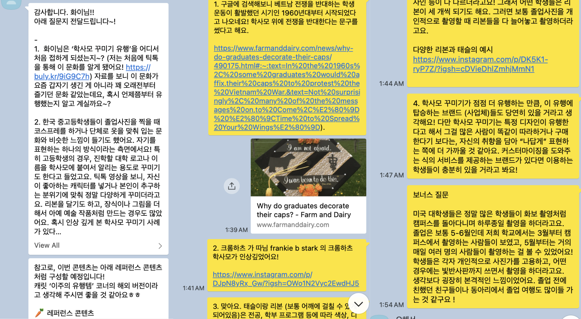 해외에 계신 분이라면 저처럼 거주 지역의 특수성과 자신이 그곳의 유행과 문화를 잘 제보할 수 있다는 점을 어필하면 도움이 될 것 같습니다. 국내에 거주중이시더라도 카페, 베이커리류나 아이돌 밈 등 자신이 특별히 잘 아는 유행 분야를 어필하고 다양한 예시를 들어 뒷받침한다면 매력적인 지원자로 보일 것 같습니다!
