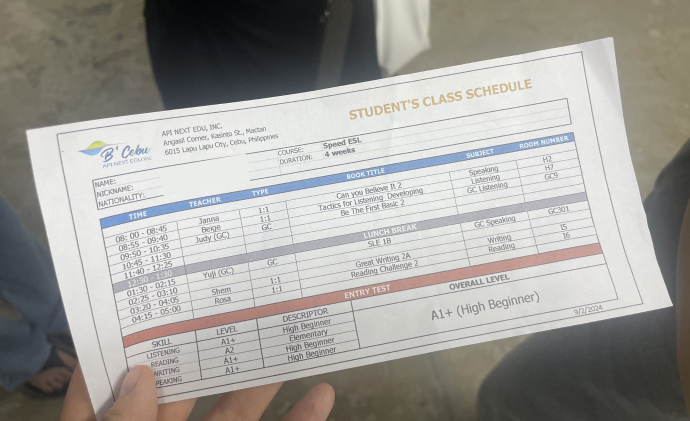 - 연수 학교 혹은 어학원: 비세부(B CEBU) 어학원