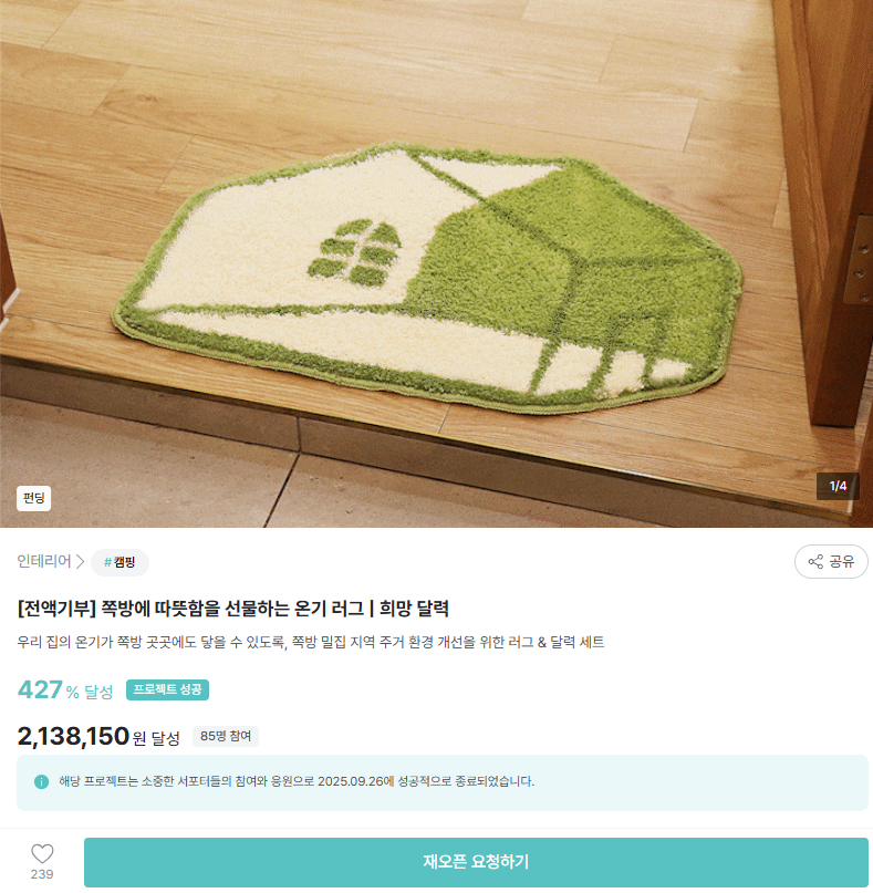 '따뜻함을 선물하는 특별한 기부: 온기 러그' 펀딩은 🚀