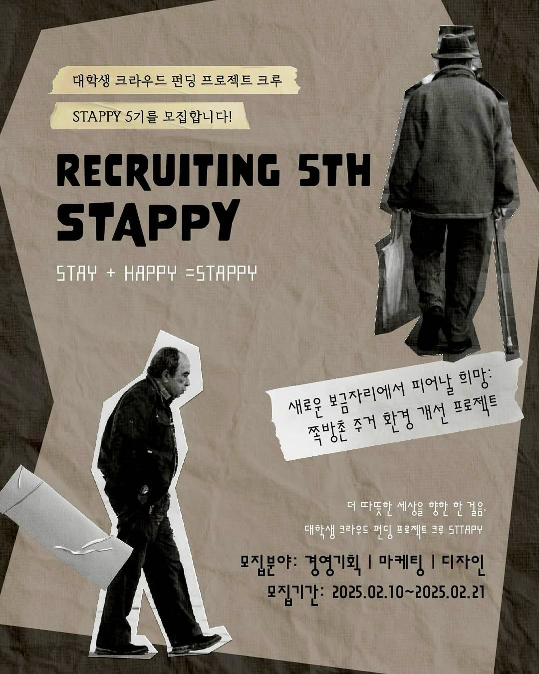 대학생들이 모여 만든 소셜 프로젝트 브랜드이자 크라우드 펀딩 팀 STAPPY는 모두가 행복한 세상을 꿈꾸며, 매 프로젝트마다 수익금을 전액 기부하는 활동을 이어오고 있습니다. STAPPY는 '우리만의 방식으로 세상에 선한 영향력을 전할 수 없을까?' 라는 물음에서 시작되었어요. 이번 다섯 번째 펀딩 프로젝트 역시 전액 기부를 목표로 진행되었습니다. 저 또한 더 나은 세상을 만들어 간다는 취지에 공감하여 팀에 함께하게 되었습니다.