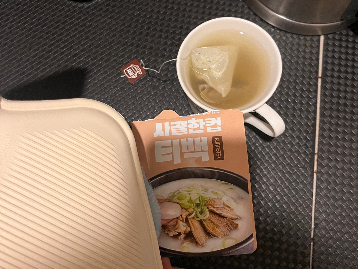 홈맘이 챙겨주셨던 저녁과 따뜻한 차 🍵기간을 정해두고 머무르는 만큼, 아프면 여러 활동에도 제한이 생기고 시간 및 체력 관리도 어려워지더라고요. 상비약은 충분히 여유 있게 챙겨가시고, 몸 관리 소홀히 하지 마시길 바랍니다. 전 한동안 한기를 너무 많이 느껴서 잘 때 수면잠옷, 수면양말, 후드집업, 패딩까지 입고 홈맘이 주신 전기장판을 틀고 자야 할 정도였어요....🥹
