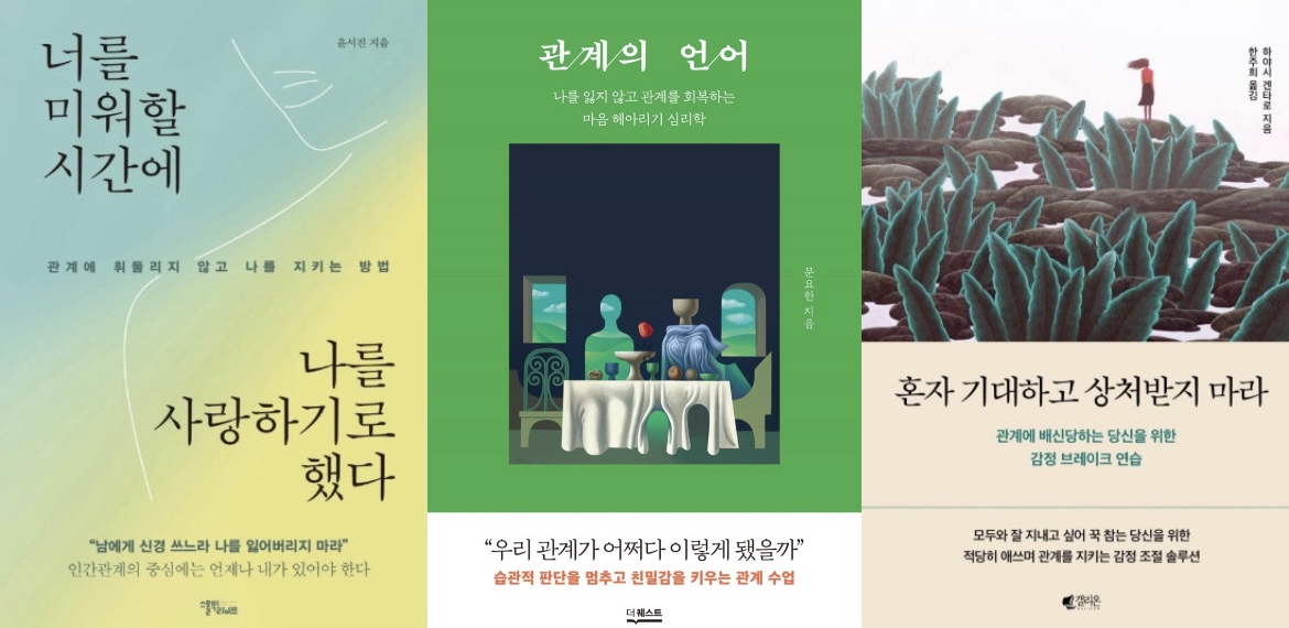 추천 책: <너를 미워할 시간에 나를 사랑하기로 했다> <관계의 언어> <혼자 기대하고 상처 받지 마라>
