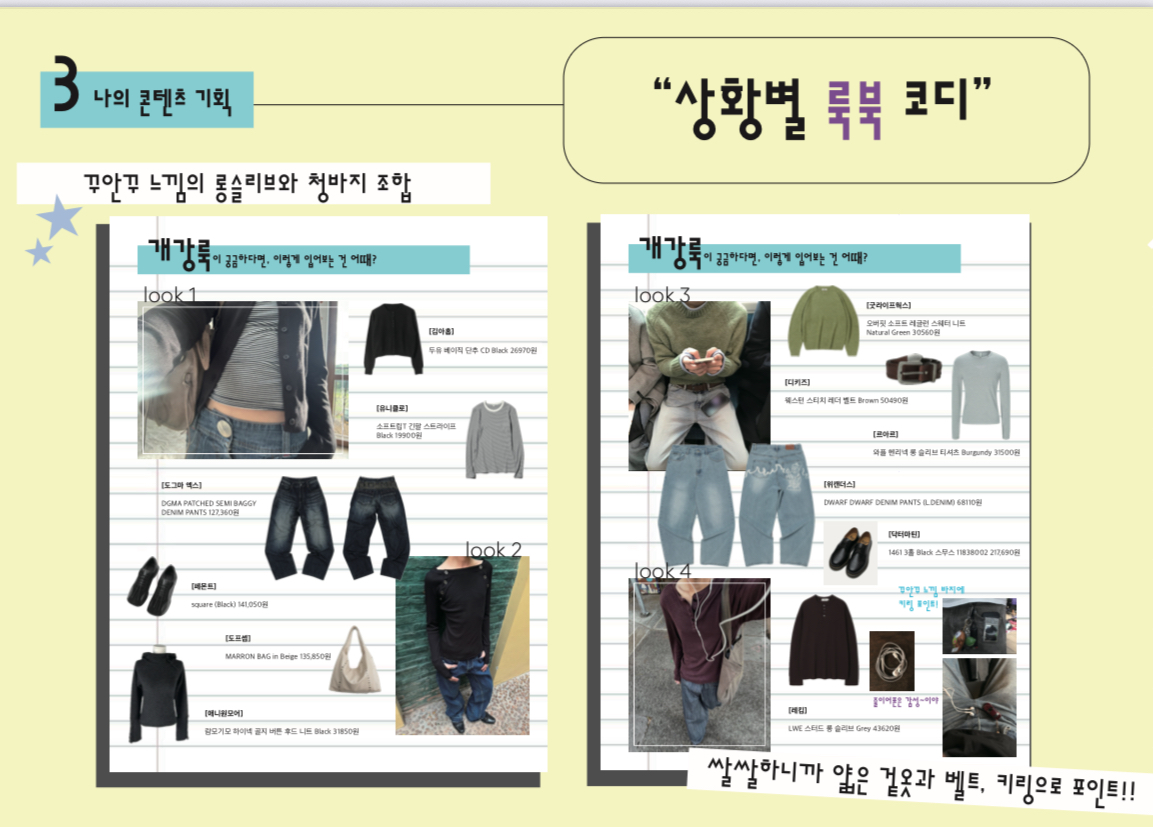 학생들이 직접 옷을 찾지 않고도 상황별 룩과 추천 옷을 소개시켜줘서 더 편리하고 부담스러지 않은 가격의 가성비 옷을 찾아드린답니다~!