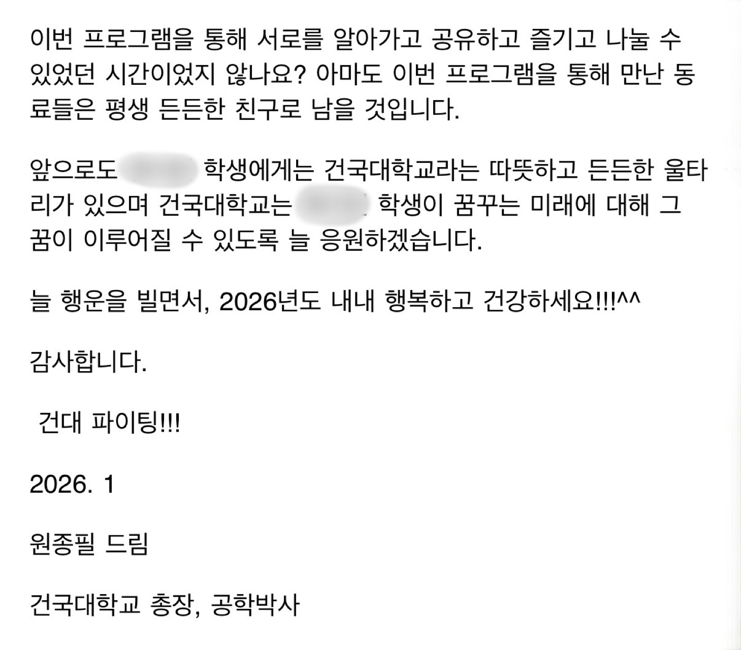 불과 작년까지만 해도 나 또한 저런 걱정에 휩쓸렸다. 그러나 무스펙에 영어영문인 내가, CES 2026 대학생 우수 서포터즈가 되고 총장님에게 이메일까지 받게되었다. 나는 스펙에 집중하여 기회를 보지 못한 과거의 나와 같은 문과생에게 내 경험을 공유하며 힘이 되어보고자 한다.
