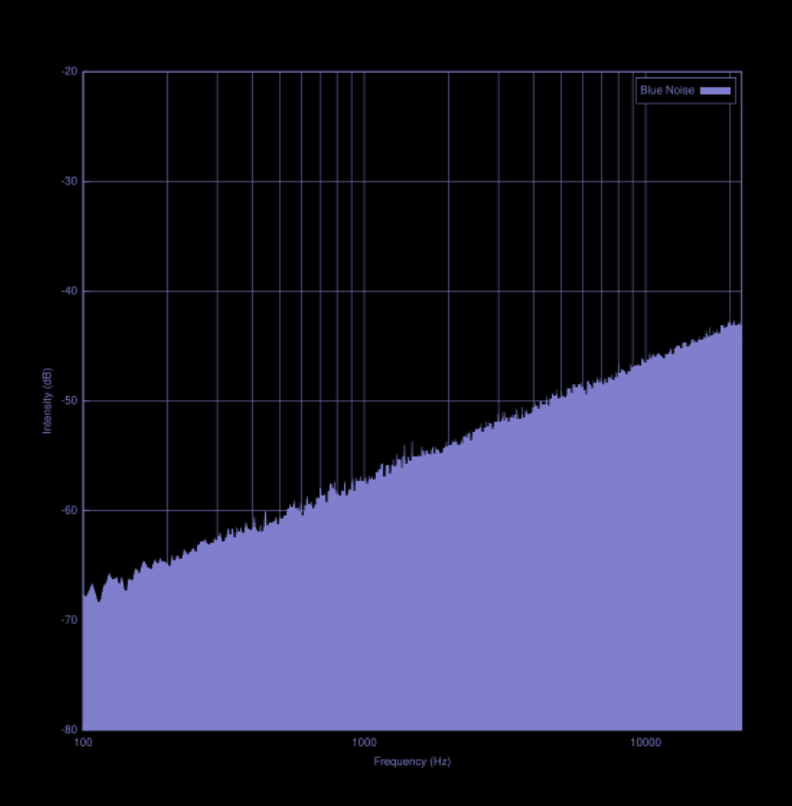 다른 노이즈들과는 다르게 블루 노이즈는 고주파가 강조된 날카로운 소리로,