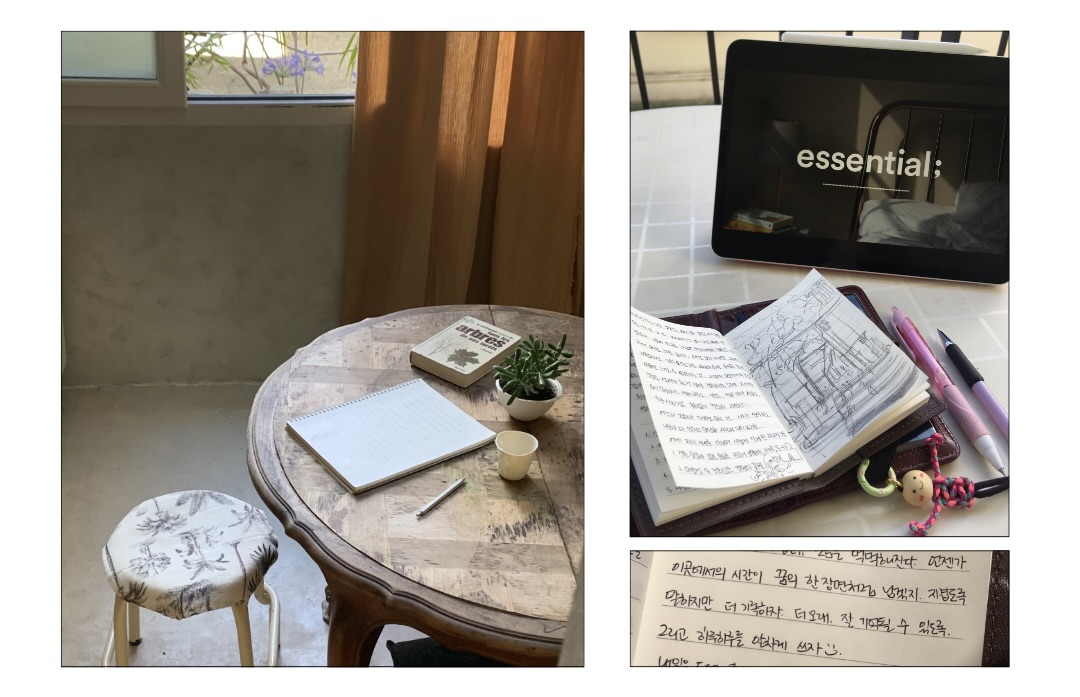 일기를 취미라고 인식한 건 얼마 되지 않았어요. 고등학생 때는 스터디 플래너에 하루를 돌아보는 피드백을 쓰는 게 습관이었고, 대학생이 된 후에는 복잡한 생각을 정리하기 위해 자연스럽게 일기를 써왔어요. 그러다 문득 일기를 쓰는 시간이 행복하게 느껴지더라고요. 스스로를 다독이기도 하고, 신세한탄을 하기도 하며, 내가 무엇에 행복을 느끼고, 힘들 땐 어떤 생각을 하는 사람인지 알게 되면서 이게 제 취미라는 걸 깨닫게 되었어요.