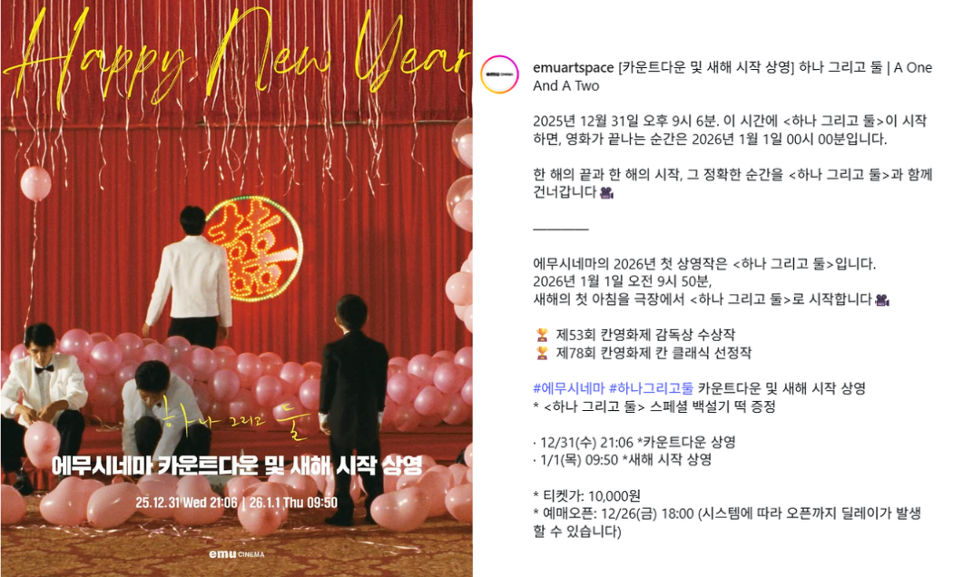 2026년 12월 31일 오후 9시 6분 이 시간에 <하나 그리고 둘>이 시작하면,