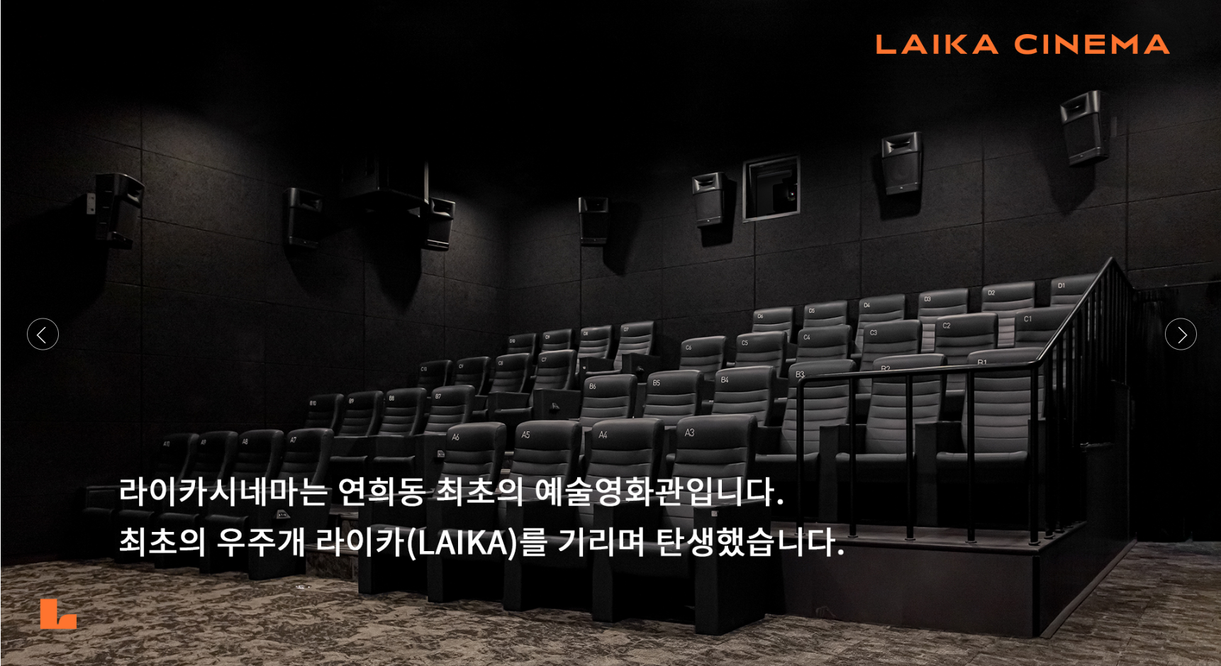 출처: 라이카시네마 홈페이지라이카시네마는 복합 문화 공간 스페이스독 안에 위치한 독립 영화관으로, 현대적인 감각의 인테리어와 설계가 돋보이는 곳이에요. 특히 돌비 애트모스 입체 음향 기술을 갖춰, 작은 상영관임에도 몰입감 있는 영화 경험을 제공해줘요.