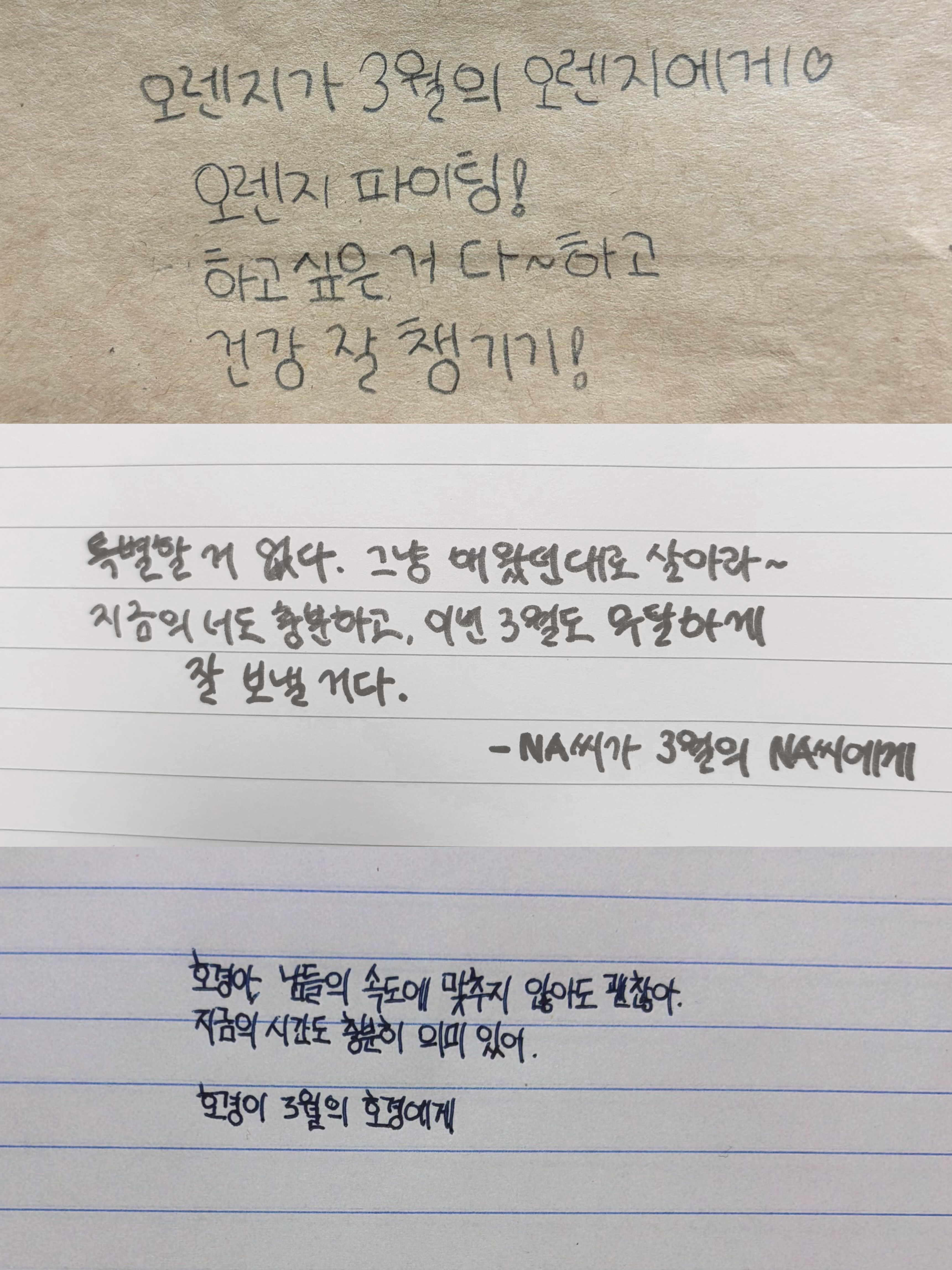 재학생 NA 씨 특별할 거 없다. 그냥 해왔던 대로 살아라~ 지금의 너도 충분하고, 이번 3월도 무탈하게 잘 보낼 거다.