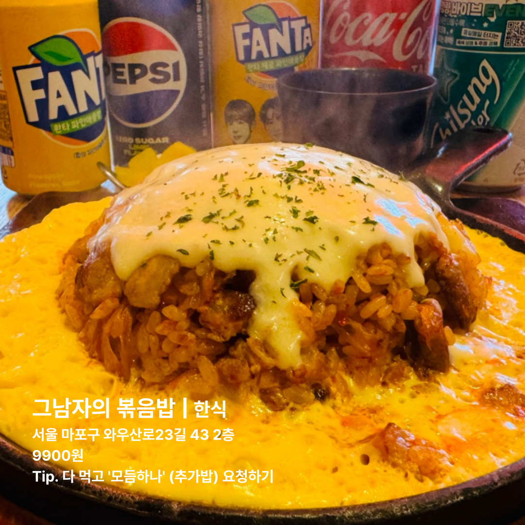 여기는 홍대생이라면 절대 모를 수 없는 인기 최고 볶음밥 집이에요!