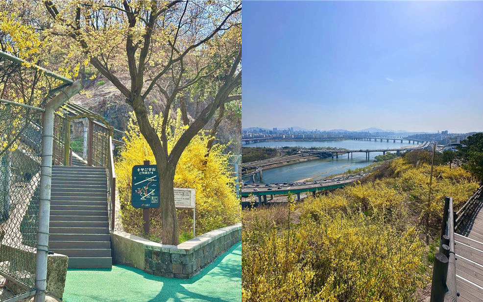 출처: 네이버리뷰 manwa*****응봉산은 개나리 꽃 명소이다. 응봉산의 정상 쪽 길에 올라가면 한강과 서울 도심이 한눈에 보이고, 그 아래로 노란 개나리가 능선을 따라 이어진다. 탁 트인 시야가 가슴에 오래 남아서 짧게 다녀와도 만족도가 높다.