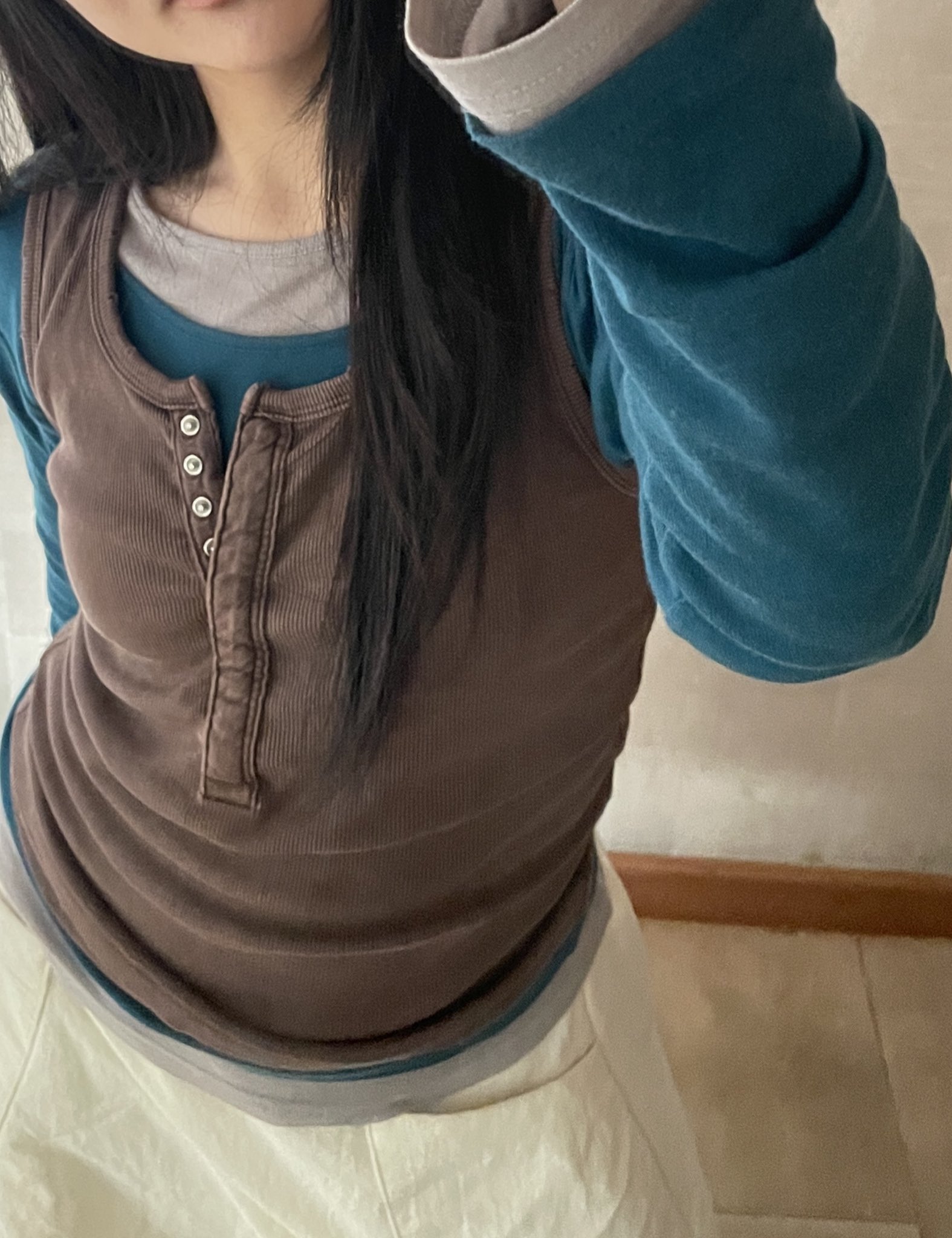 출처: 지그재그2. "상의는 넥라인이나 심플한 롱 슬리브를 자주 입는 것 같아요" => 심플한 롱 슬리브에서 특색 있는 롱 슬리브로!