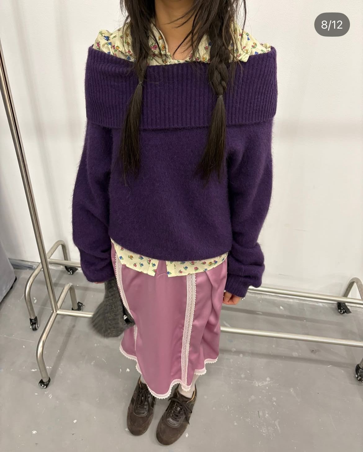 : 사실 평소에도 즐겨 입던 스타일이었어요. 보여주신 이미지처럼 높은 채도의 색상은 아니더라도 보라색과, 초록색은 포인트 컬러로 자주 입고 있습니다. 저는 컬러의 해방 키워드가 SNS에 올라오는 것을 보고 아 이 스타일도 결국 유행이 되는구나 싶었어요.