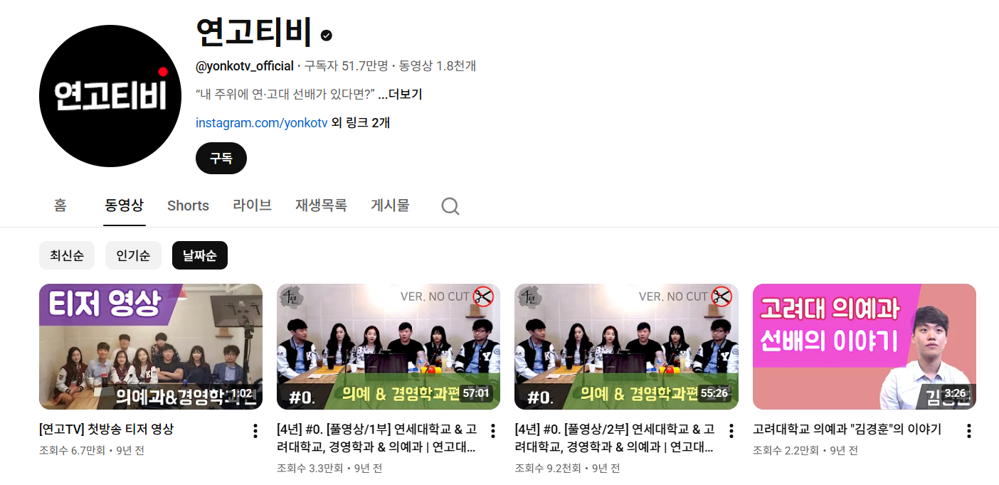 출처: 유튜브 '연고티비'연고티비를 시작으로, 자신의 이야기를 직접 영상으로 기록하는 대학생들이 등장했다.