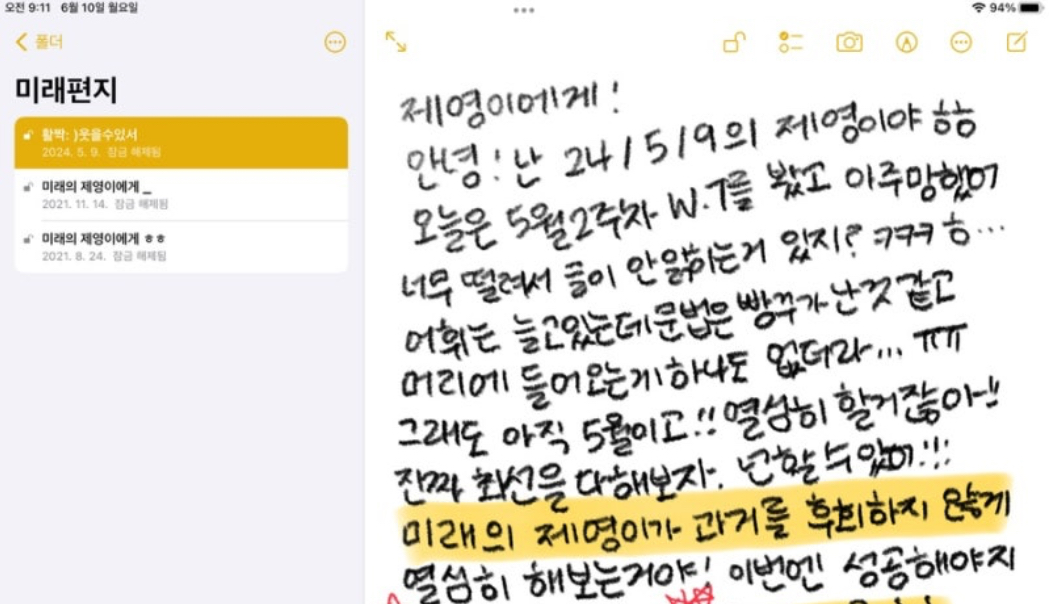 합격 발표를 확인한 순간은 어땠나요? 경희대 발표 날, 계속 시간을 확인하며 기다리는 게 너무 고통스러워서 차라리 그냥 자려고 했어요. 낮잠을 자다가 중간에 깼을 때도 ‘혹시 결과가 나왔나?’ 확인하고는, 아직 안 나왔으면 빨리 다시 잠들어야겠다며 억지로 잠을 청했죠.