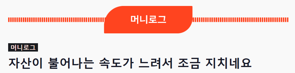마지막 챕터는 매일 바뀌는 부분입니다. 최근 29일 자에서는 '머니로그'라는 코너를 소개했습니다. 머니로그는 독자님의 사연을 받아 '머니 + 브이로그' 로 실수령액, 저축액, 고정비, 변동비 등을 소개하고 돈 관련 목표와 고민을 머니레터 에디터분들이 직접 솔루션을 제공해 주는 코너였습니다.