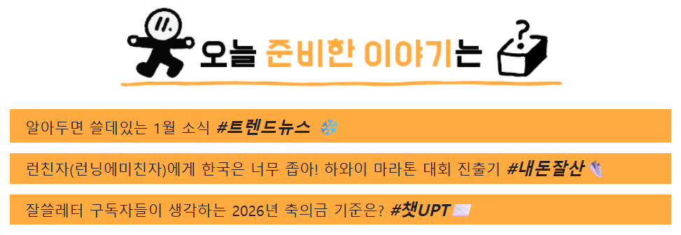 어피티의 '잘쓸레터'는 소비와 일상 트렌드 뉴스를 중심으로, 일상에서 바로 체감할 수 있는 이슈들을 다룹니다.
